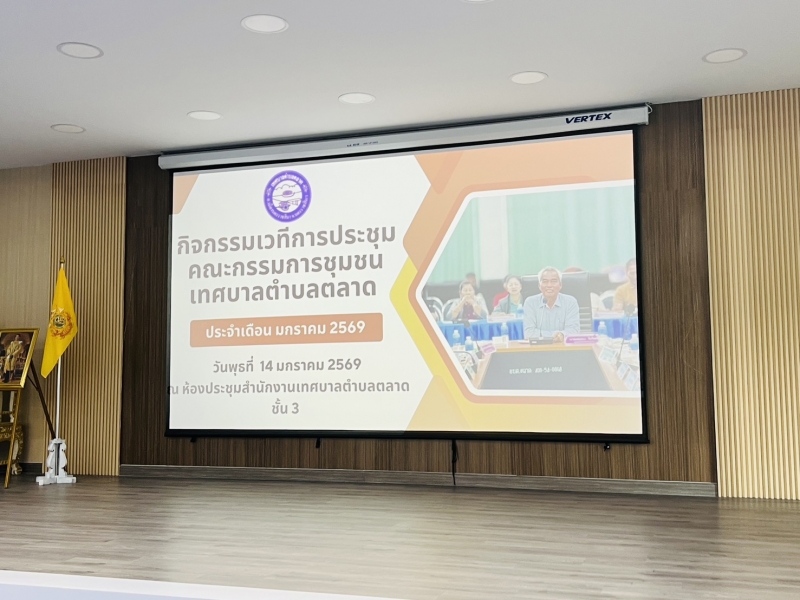 วันที่ 14 มกราคม 2569 นายสนอง ไขโพธิ์ นายกเทศมนตรีตำบลตลาด เป็นประธานเวทีประชุมคณะกรรมการชุมชน ประจำเดือน มกราคม 2569 ณ ห้องประชุมสำนักงานเทศบาลตำบลตลาด (ชั้น3) ซึ่งมีผู้เข้าร่วมกิจกรรม ประกอบด้วย คณะผู้บริหาร ปลัดเทศบาล พร้อมด้วยหัวหน้าส่วนราชการของเทศบาลตำบลตลาด ร่วมกับ คณะกรรมการชุมชนจำนวน 9 ชุมชน โดยมีวัตถุประสงค์ เพื่อส่งเสริมสนับสนุนให้คณะกรรมการชุมชน เกิดกระบวนการเรียนรู้ร่วมกันด้านการพัฒนาและแก้ไขปัญหาความต้องการของชุมชนสามารถร่วมกันบริหารจัดการชุมชนของตนเองได้อย่างมีคุณภาพและเพื่อพัฒนาศักยภาพของคณะกรรมการชุมชนในการสร้างกระบวนการมีส่วนร่วมของคนในชุมชน ร่วมกันคิด ร่วมกันแก้ปัญหาโดยมีเป้าหมายจัดกิจกรรม เวทีประชุมคณะกรรมการชุมชน
